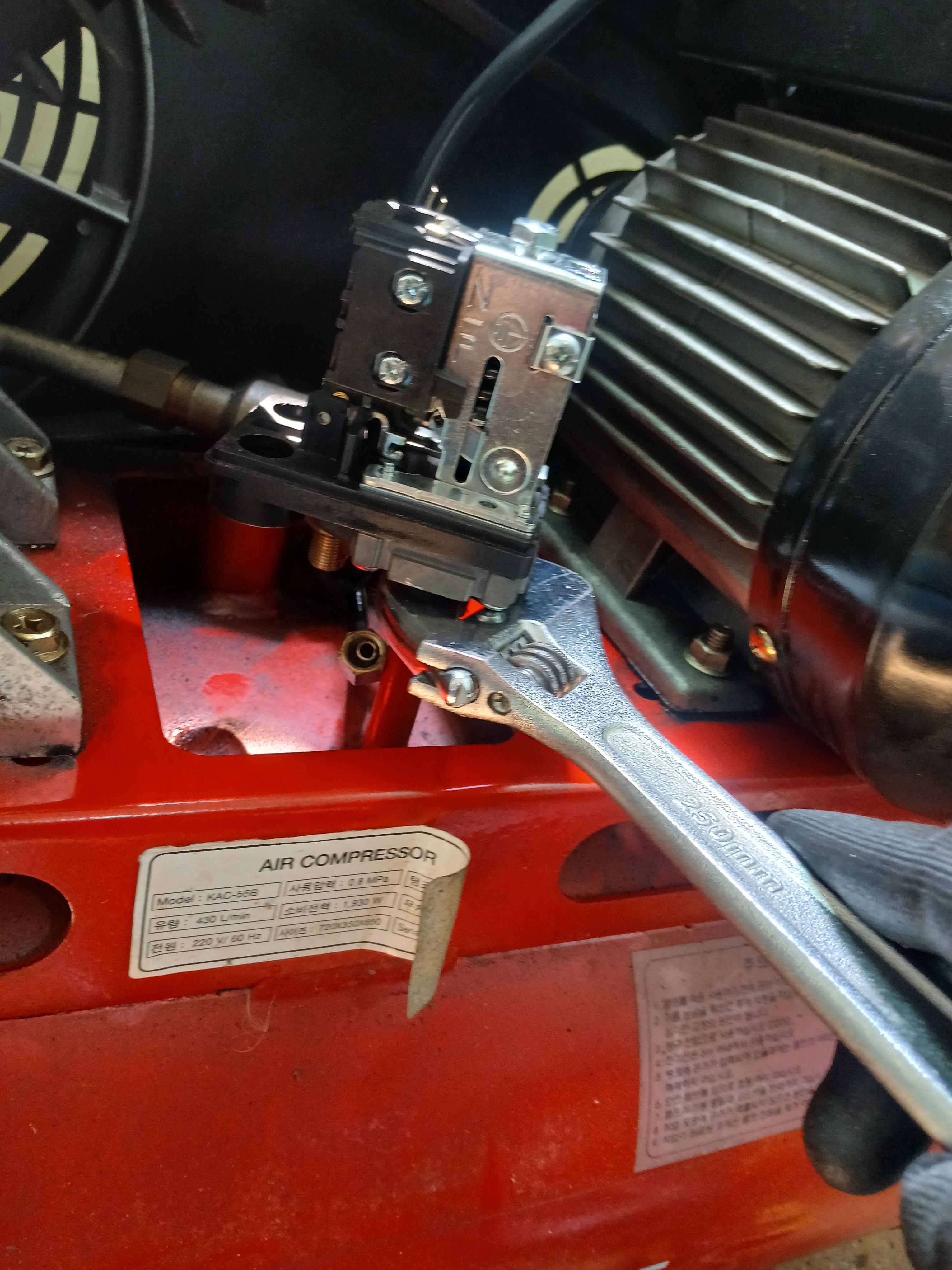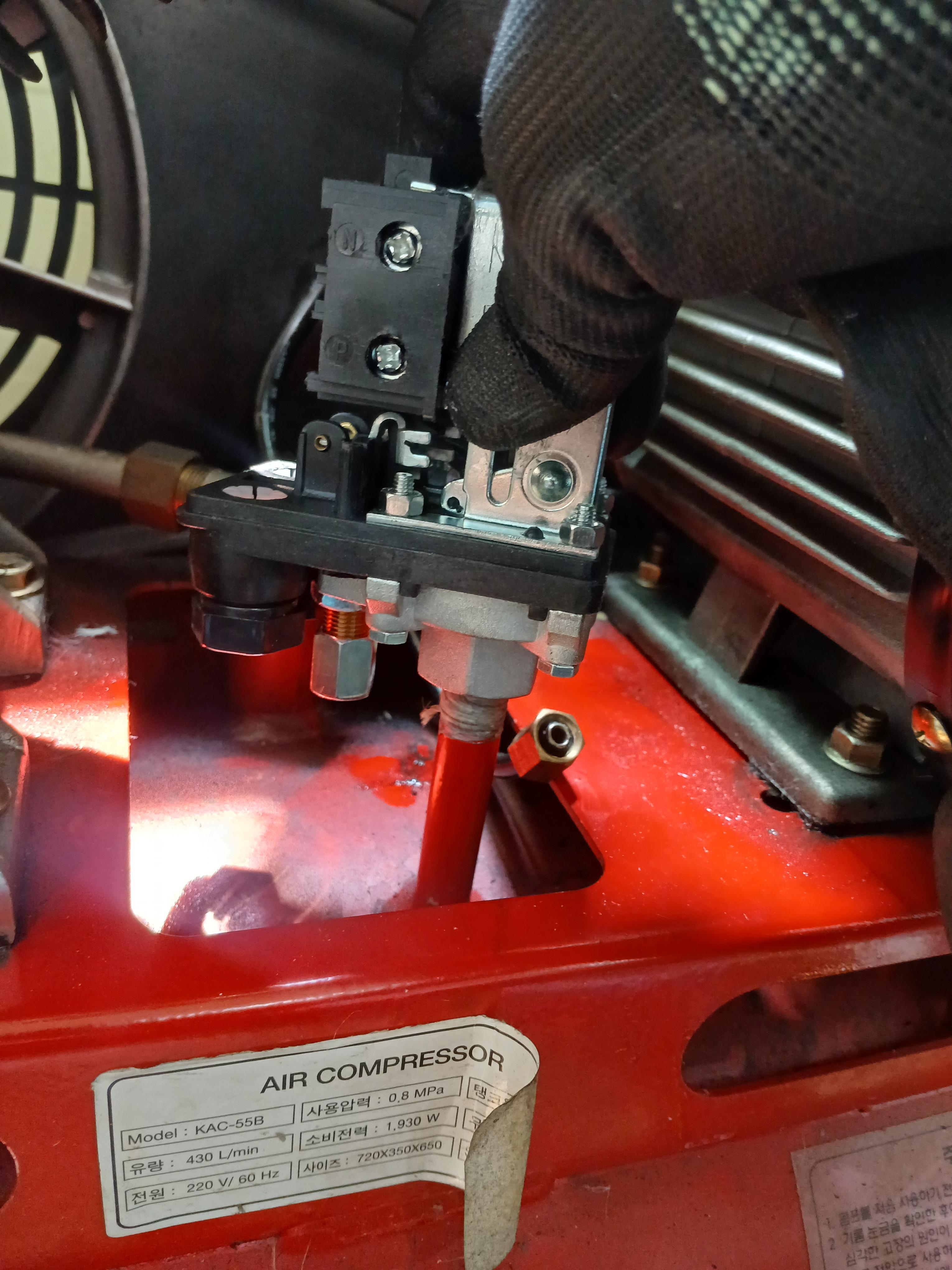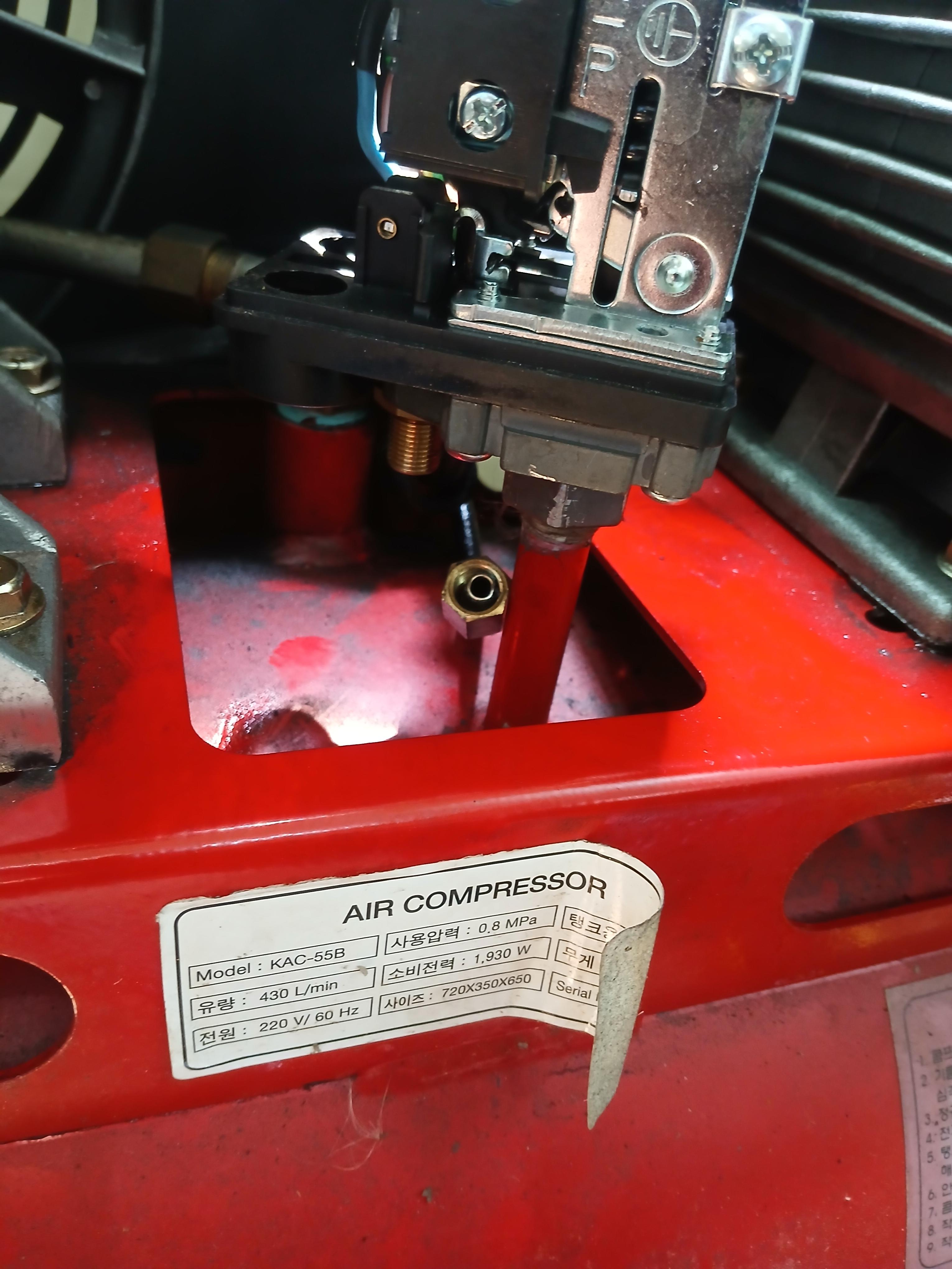 이번 글에서는 점검을 마친 계양콤프레샤 KAC-55B (5.5마력)의 압력 스위치 및 계기 교체 수리 과정을 공유합니다.